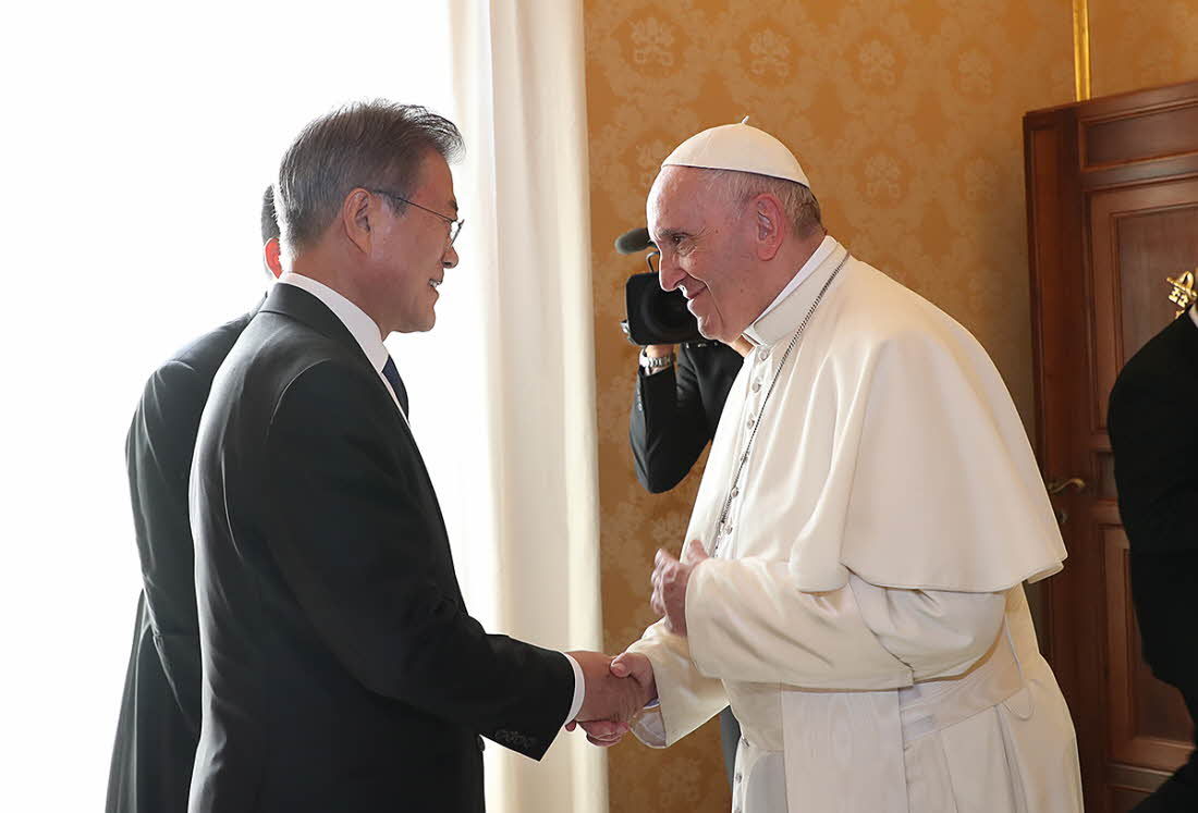 ▲「沈黙」の同胞、文在寅大統領とフランシスコ法王(2018年10月19日、バチカンで、韓国大統領府公式サイトから)