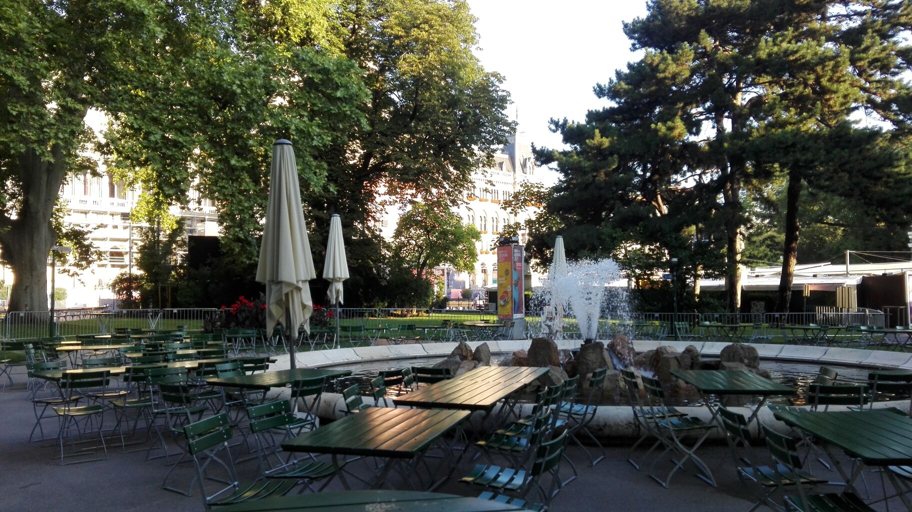 ▲ウィーン市庁舎前広場の噴水周辺(2021年8月15日、撮影)