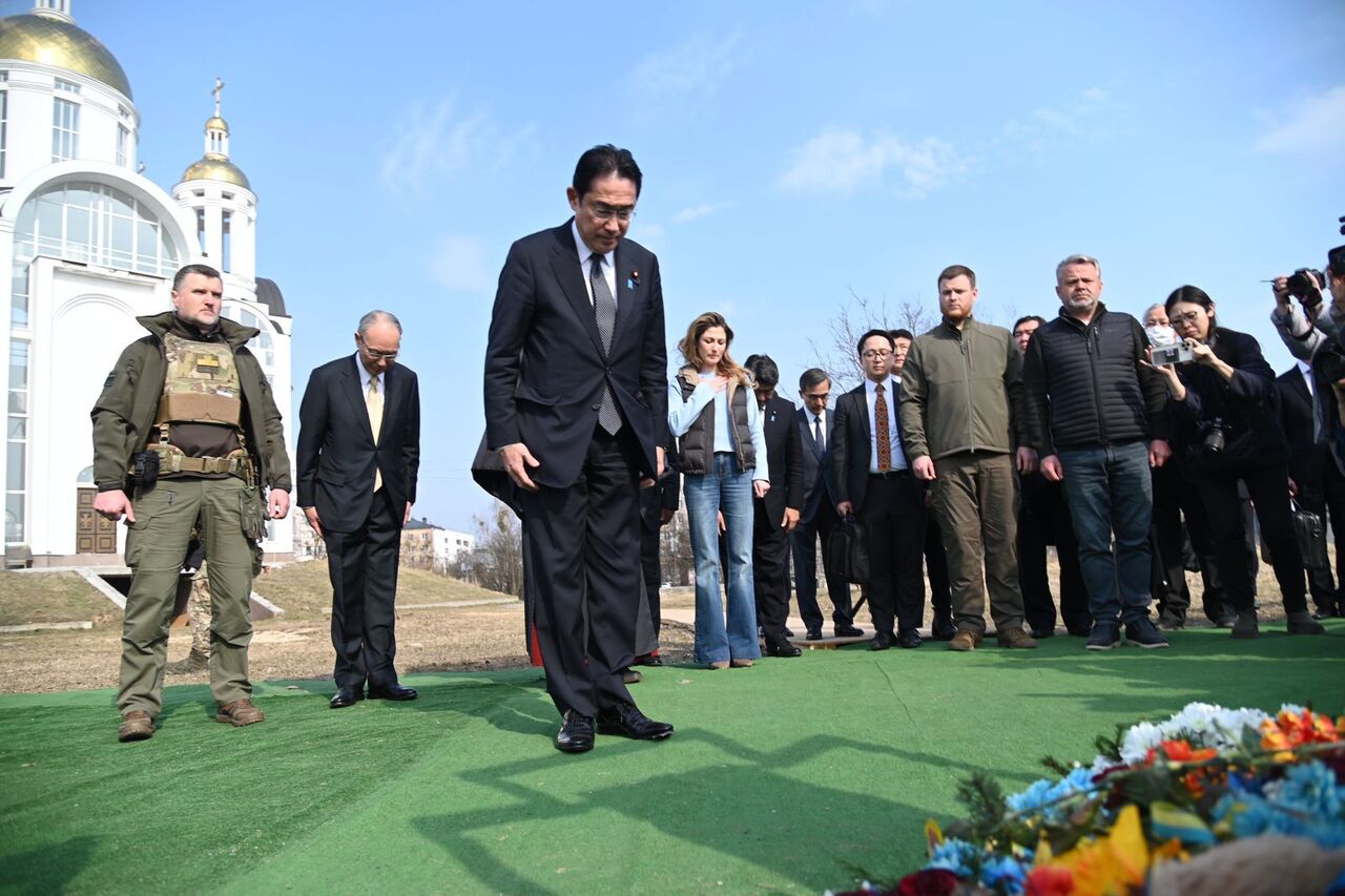 岸田文雄首相は21日、ウクライナン首都キーウを訪問し、ゼレンスキー大統領と会談した。その前、首相はキーウ近郊のブチャを訪問し、ロシア兵士に虐殺された犠牲者が葬られている場所で献花し、追悼した。短期間にキーウ制圧を考えていたロシア軍はブチャまで進攻したが、ウクライナ側の抵抗で後退を余儀なくされた。ブチャではロシア兵に目隠しされた後、頭を射たれたり、路上にいた市民たちも射殺された。ロシア兵が撤退した後のブチャには多くの犠牲者が路上や家屋内で見つかった。メディアは「ブチャの虐殺」と呼び、ロシア軍の戦争犯罪行為と報じてきた。