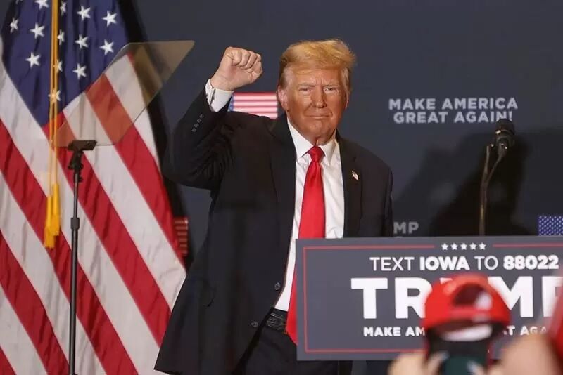 ▲米中西部アイオワ州コーラルビルで演説するトランプ前大統領(2023年12月13日、UPI)