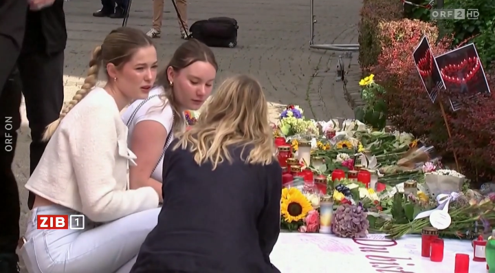 ▲犠牲者を追悼するゾーリンゲンの市民(オーストリア国営放送の中継からスクリーンショット=2024年8月25日)