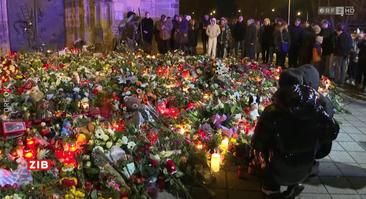 ▲マクデブルクの惨劇を追悼する人々(2024年12月21日、オーストリア国営放送オンラインのスクリーンショットから)